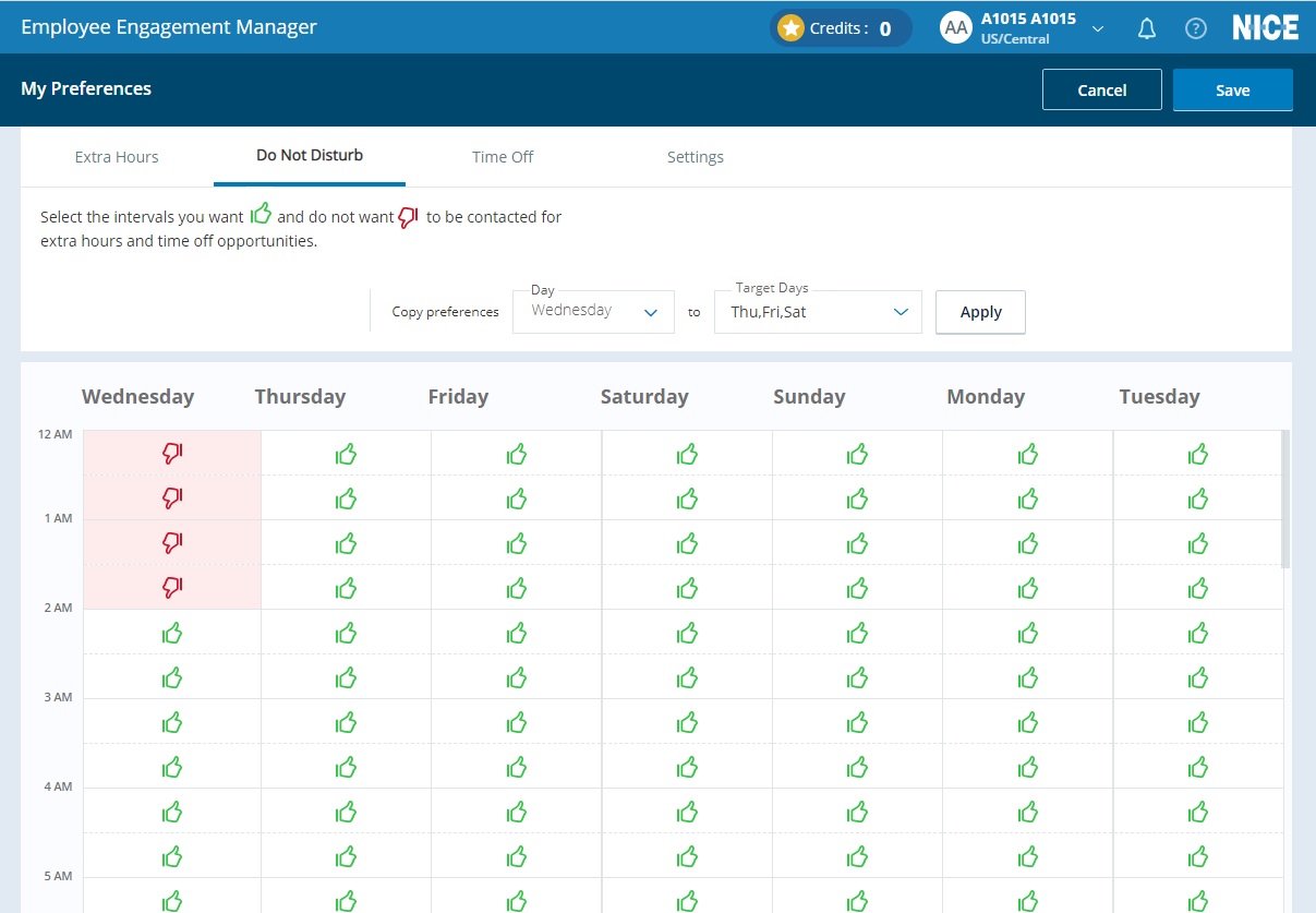 when you DO NOT want EEM to contact you with schedule change opportunities (see Set Do Not Disturb Preferences)