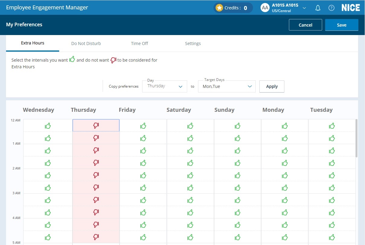 when you DO NOT want extra hours opportunities (see Set Extra Hours Preferences)
