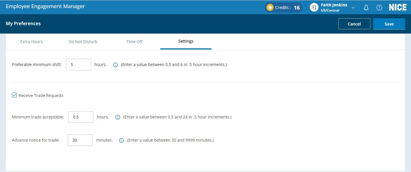 You can also set the minimum number of hours you want to work and your trade preferences (see Set Minimum Hours and Trade Preferences).
