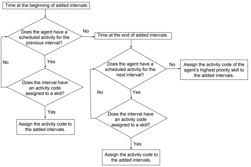 EEM assigns the added intervals the activity code of your highest priority skill. If you do not have one, EEM assigns the program's default activity. |